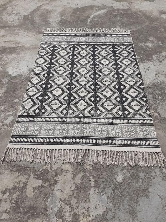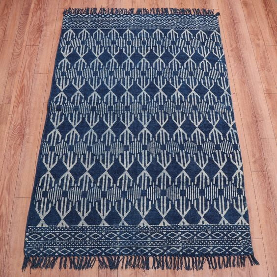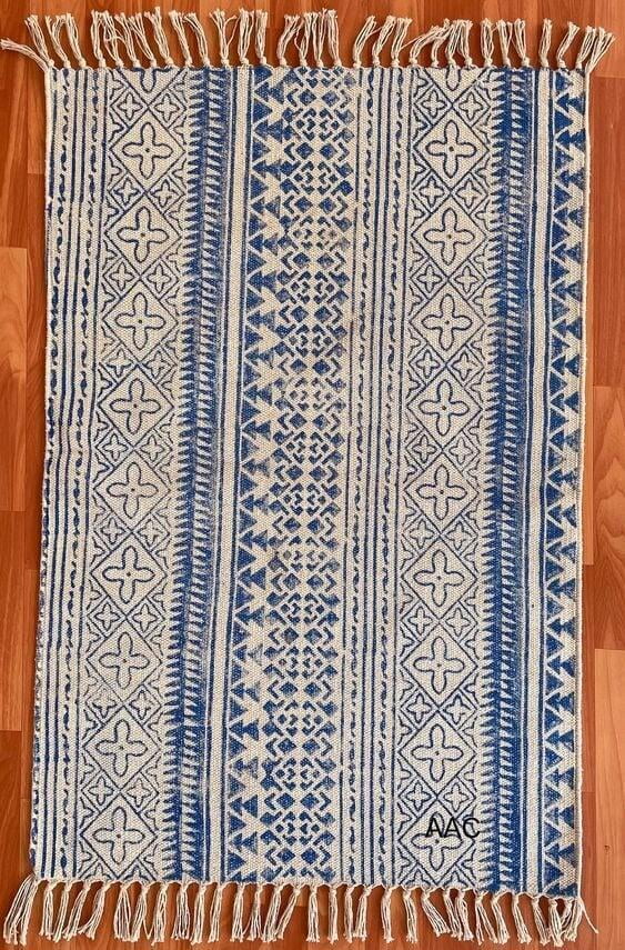 We are associated with suppliers who has beautiful and large collection of Cotton printed Rugs. Give a classy look to your living space. This rug is made by 100% Cotton. It is expertly crafted by fiber artisans, and the designs are like no other. Due to the precise construction techniques used, a rug that is hand block printed with indigo dyeing can last for years to come while providing you with comfort and satisfaction.